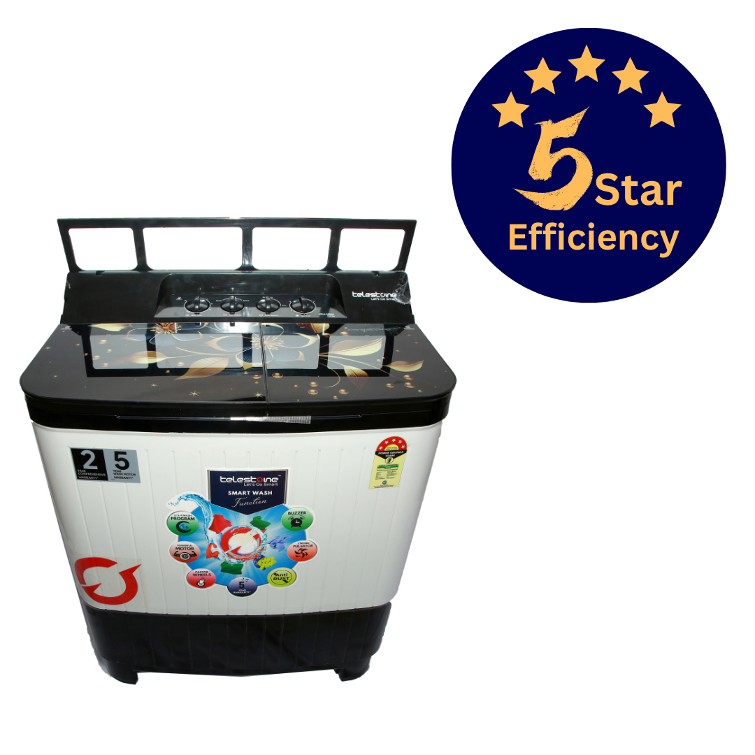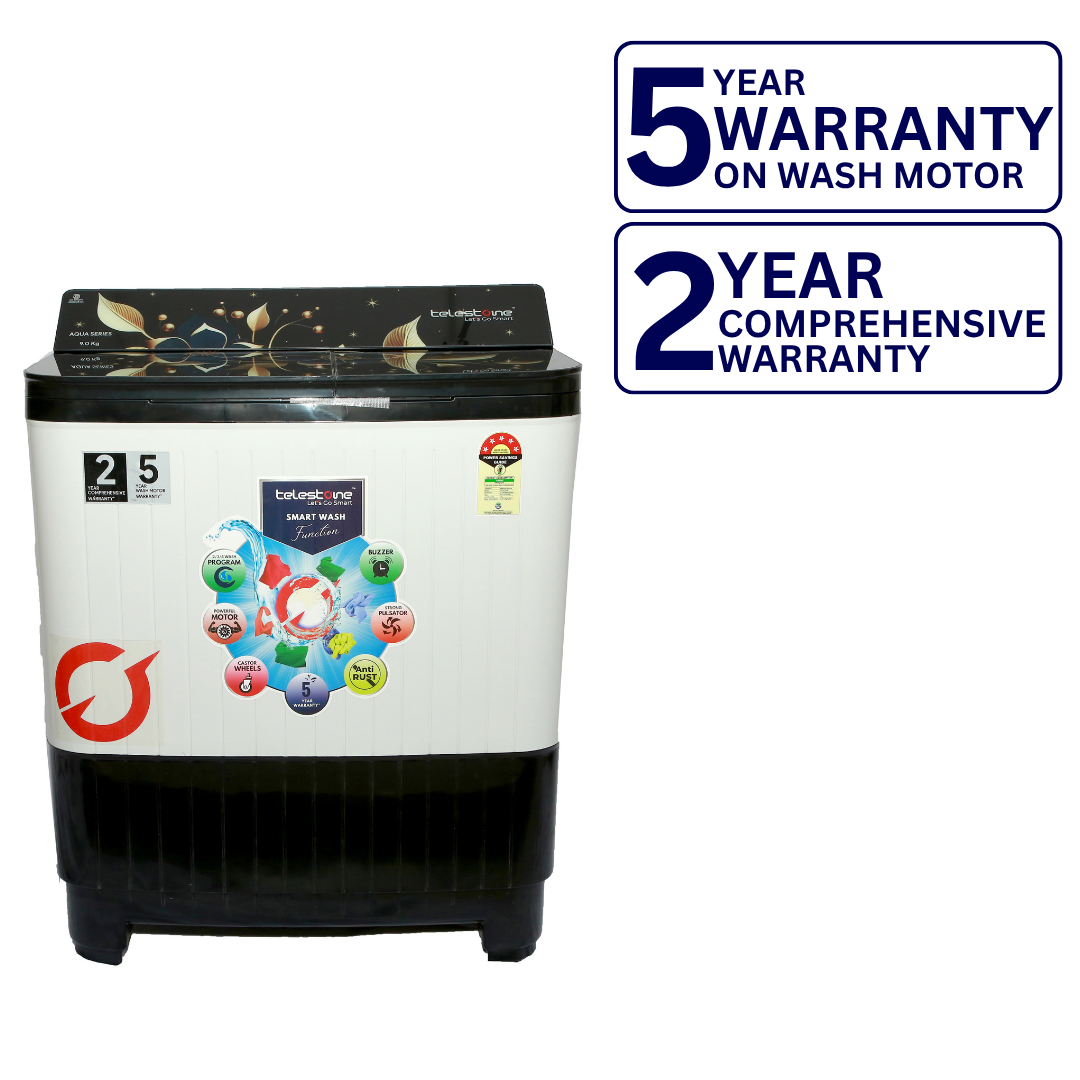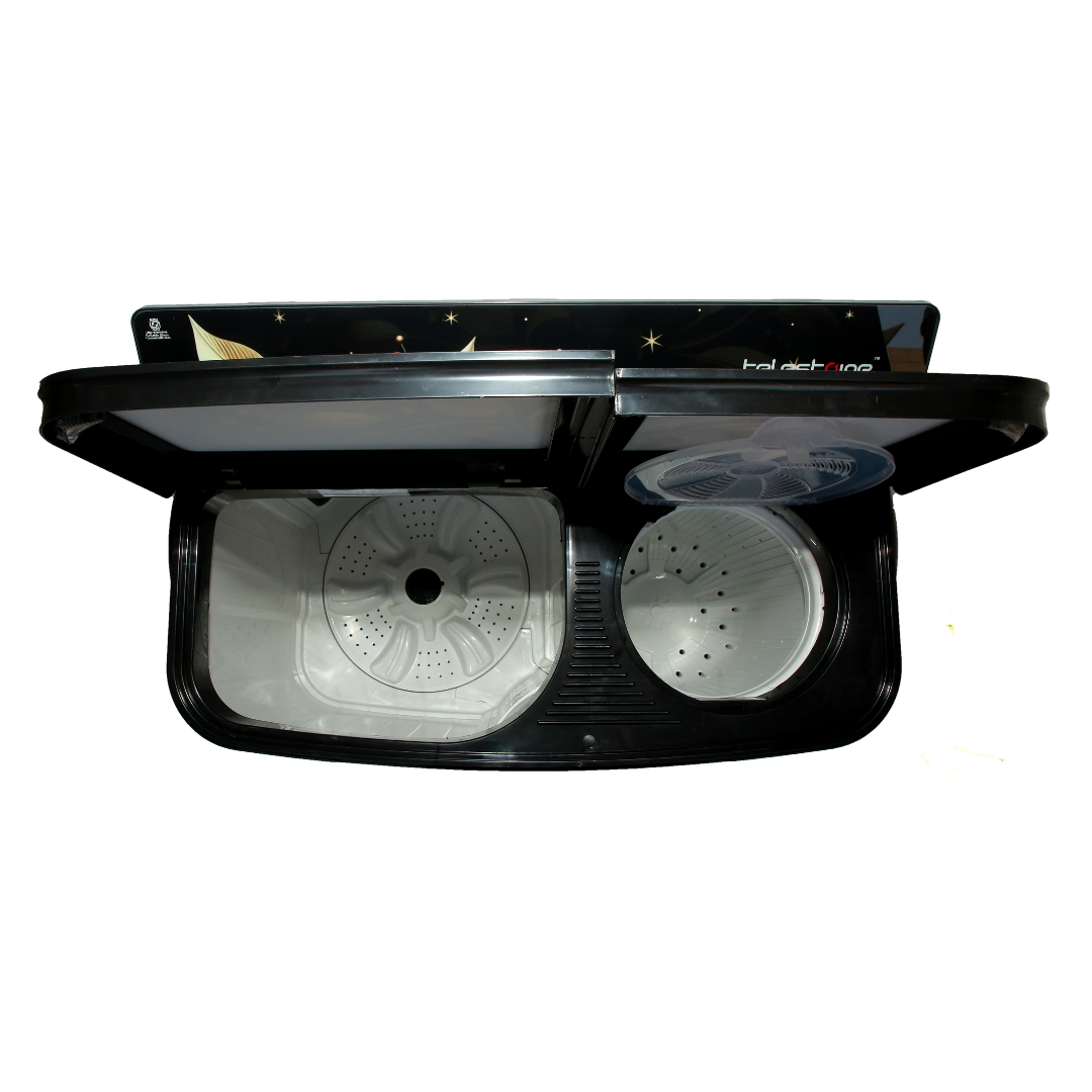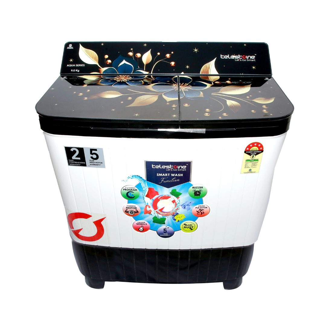 Experience efficient washing with the Telestone AQUA 9.0 KG Black variant, featuring a premium glass lid and stylish panel cover with border graphics. Designed for durability and smooth performance, it handles daily laundry with ease. Ideal for users seeking a superior look with powerful wash capabilities.