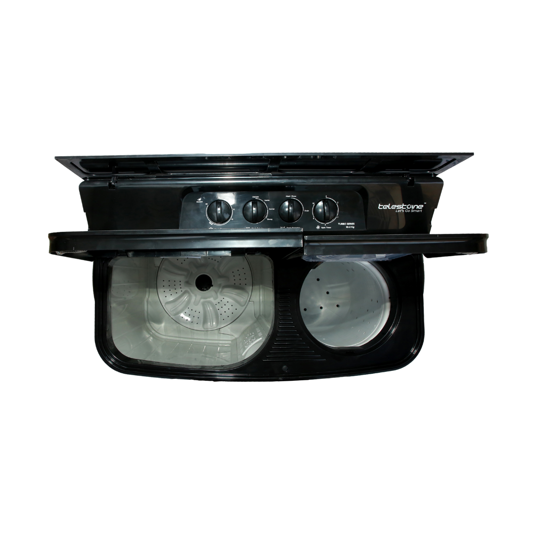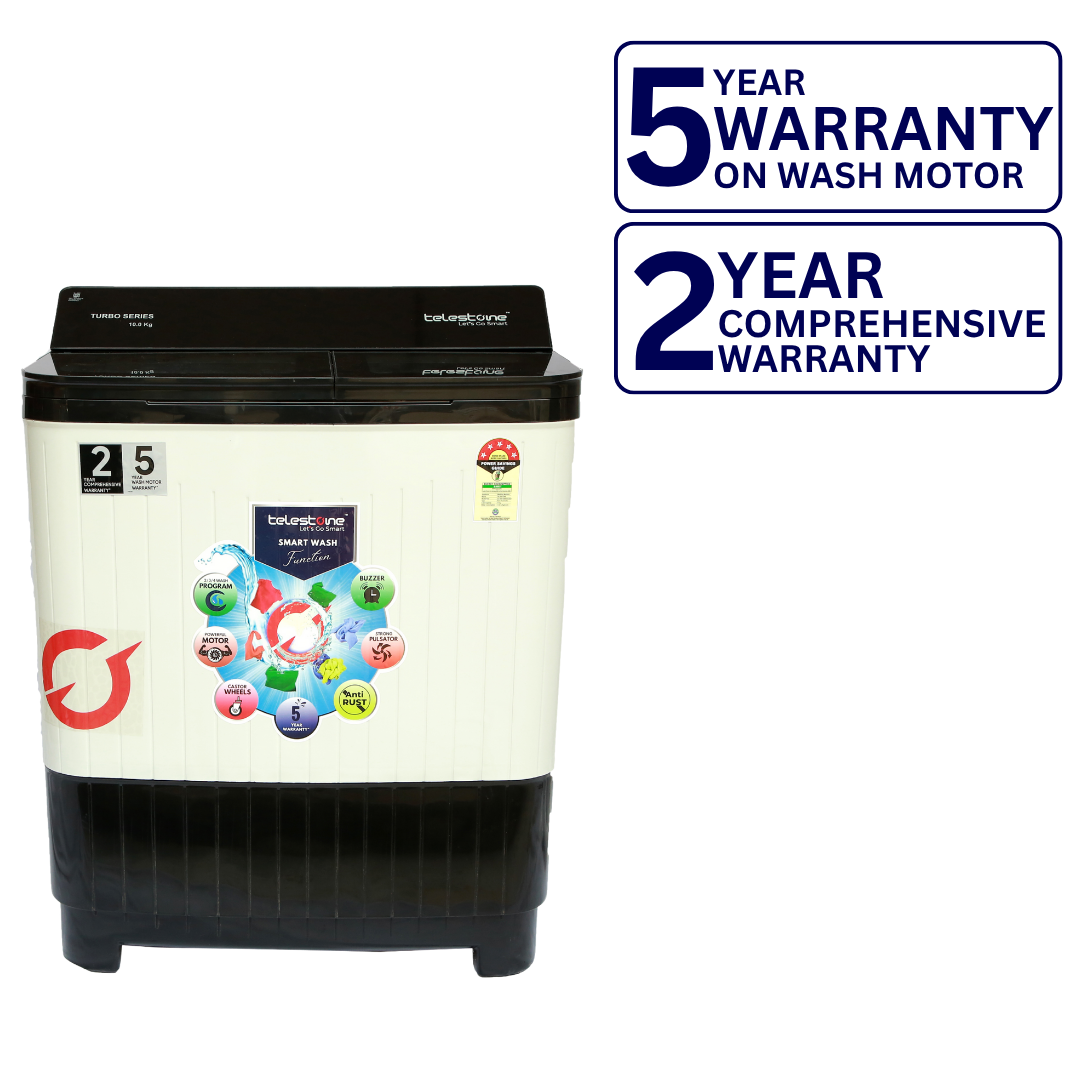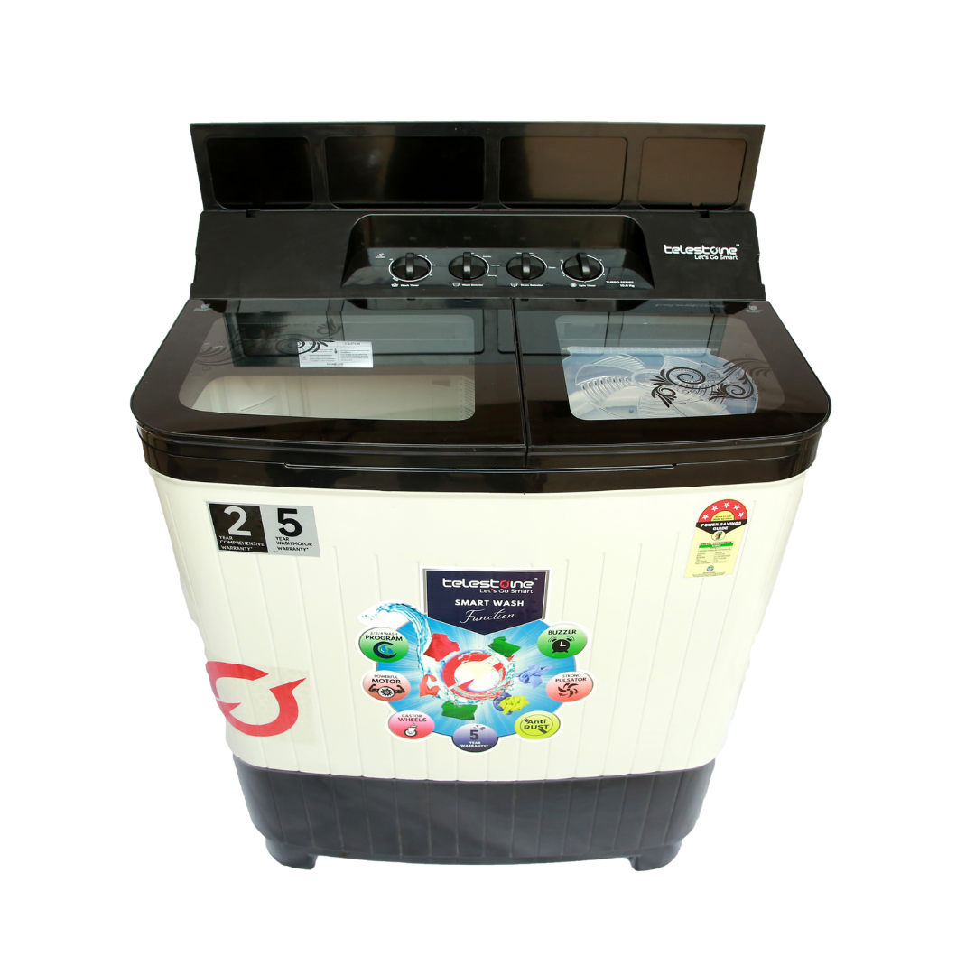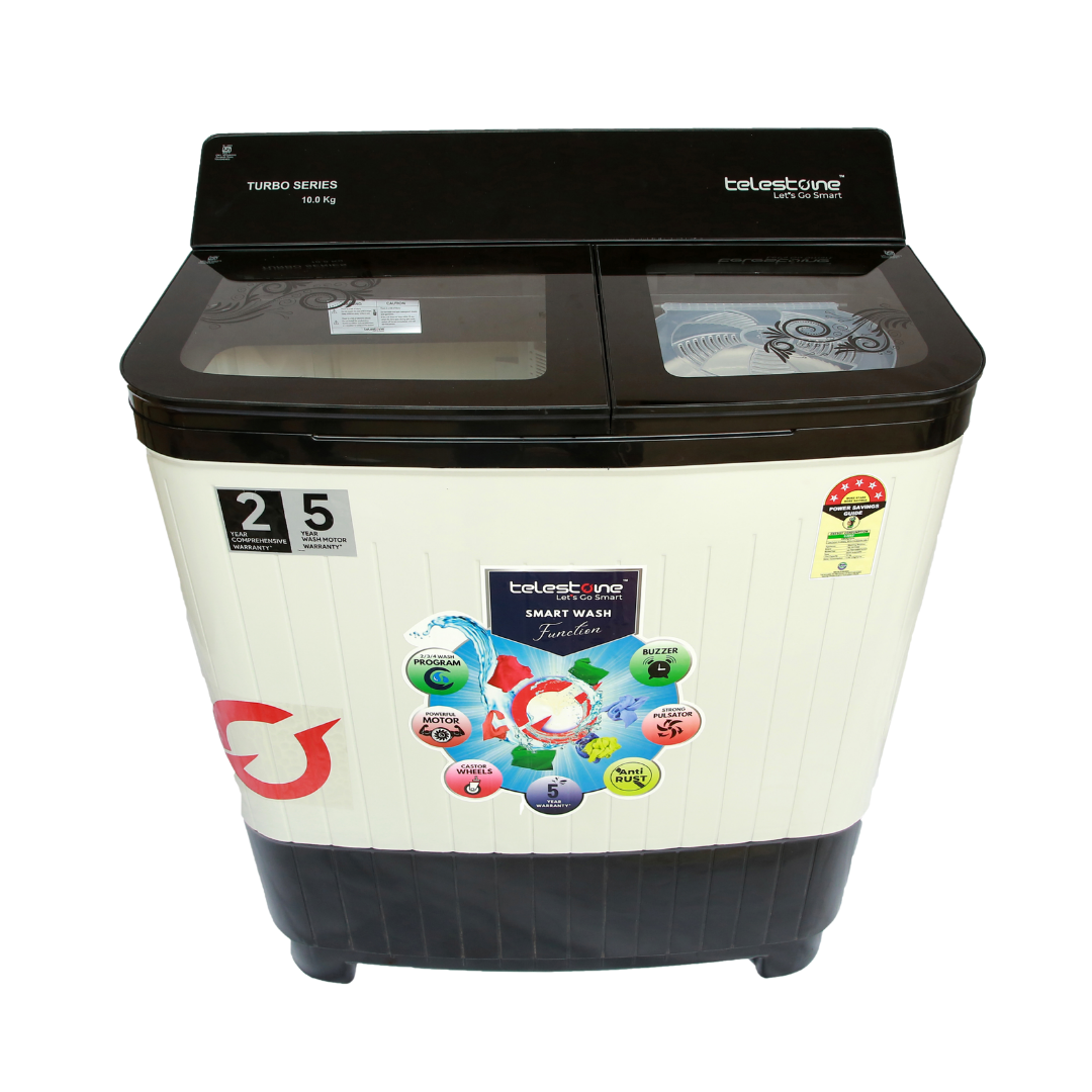 This Telestone TURBO 10 KG edition comes with a stylish glass lid and premium panel cover with border graphics. Designed for heavy-duty performance, it manages large laundry loads with powerful wash functions. A perfect blend of style, strength, and superior washing efficiency.
